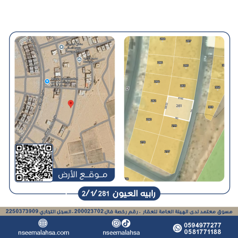 نص أرض سكنية للبيع في الرابية بالعيون 281/1/2