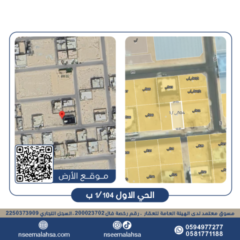 نص أرض للبيع في الضاحية الحي الاول 104/1 ب