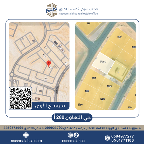 نص أرض للبيع في التعاون 280 / 2 أ