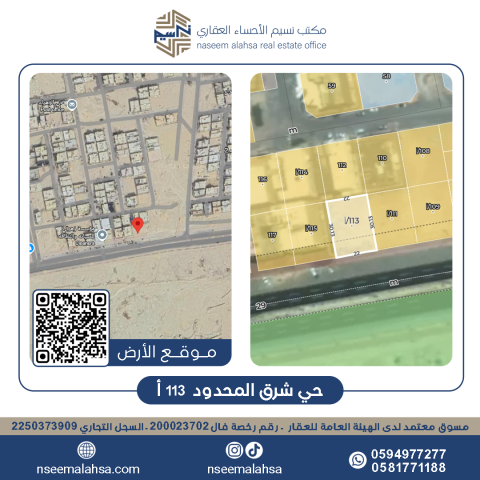 أرض تجارية للايجار في شرق المحدود 113 أ